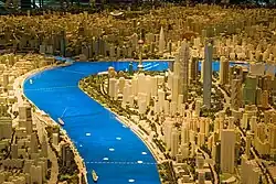 Contemporary urban planning in China is undergoing rapid, unprecedented urbanization and industrialization. In fact, China's urbanization rate was almost 50% by the year 2010, a stark contrast from previous decades.[12] Based upon the current Chinese Urban and Rural Planning Act, two tiers – master plan and detailed plan – make up the Chinese urban planning system.[13] Reviewing the history of urban planning in China, the contemporary planning norm is neither simply following Soviet-style planning nor prohibiting advanced Western viewpoints of urban development. Urban renewal and redevelopment are common themes in contemporary Chinese planning. Large swathes of major cities are sometimes torn down at once to allow for new uses. In some cases, residents simply refuse to move out and developers have to adjust their plans accordingly.[11] These residents have been dubbed "nail houses" or "dingzi hu", and there have been many famous cases of these holdouts in Chinese media.