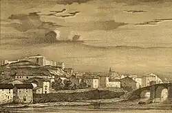 Miranda de Ebro most likely originated atop La Picota Hill as a military outpost during the Reconquista. However, it was not founded during this conflict but rather repopulated.[4] In 1099, Alfonso VI of Castile granted the city an important charter (fuero),[5] by which time it had already expanded from the hill to the river, and a bridge had even been built earlier. The Fuero de Miranda also mentions the existence of the city's first two districts:[6]