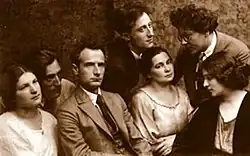Young Greenberg was encouraged to write by Shmuel Yankev Imber, a Yiddish neo-romantic poet, and Tsevi Bikeles-Shpitser, the Yiddish theater critic who edited the local newspaper Tagblat.[3] Some of his poems in Yiddish and Hebrew were published when he was 16.[10][7] His first works were published in 1912 in the Labor Zionist weekly Der yidisher arbayter (The Jewish Laborer) in Lemberg and in Hebrew in Ha-Shiloaḥ in Odessa.[5] His first book, in Yiddish, was published in Lwów while he was fighting on the Serbian front. In 1920, Greenberg moved to Warsaw, with its lively Jewish cultural scene. He was one of the founders of Di Chaliastre (literally, "the gang"), a group of young Yiddish writers that included Melech Ravitch. He also edited a Yiddish literary journal, Albatros.[11] In the wake of his iconoclastic depictions of Jesus in the second issue of Albatros, particularly his prose poem Royte epl fun veybeymer (Red Apples from the Trees of Pain). The magazine incorporated avant-garde elements both in content and typography, taking its cue from German periodicals like Die Aktion and Der Sturm.[12]