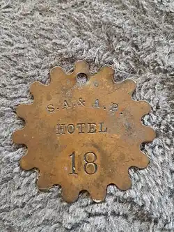 Key fob from the SA&AP hotel in Rosebud, Texas where many workers and corporate elites would stay. There is a great chance that Lott may have stayed at this hotel.