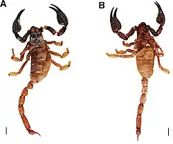 - ^ a b Peters, W (1861). "Eine neue Eintheilung der Skorpione und über die von ihm in Mossambique gesammelten Arten von Skorpionen, aus welchem hier Auszug mitgetheilt wird". Monatsberichte der Königlichen Preussischen Akademie der Wissenschaften zu Berlin. 1861: 507–516 [511].
