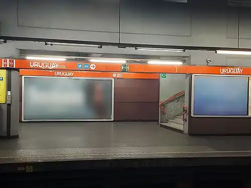 Uruguay is an underground station on Line 1 of the Milan Metro in Milan, Italy. The station was opened on 12 April 1980 as part of the extension from Lotto to San Leonardo.[2] It is located between Via Benedetto Croce and Via Giacomo Quarenghi, near Via Uruguay.