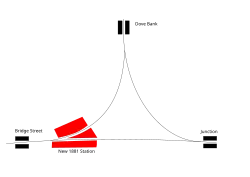 Uttoxeter then had three stations in total. In 1880, the NSR decided to close all three and construct a north to west line forming a triangular junction. A new Uttoxeter station replaced all three at this new junction and opened on 10 October 1881.[1][2] There is a model of the 1881 station at the Uttoxeter Heritage Centre.