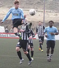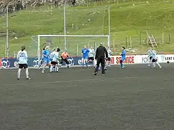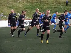 Víkingur is a Faroese professional football club based in Leirvík. The club was founded in 2008 after the merger of GÍ Gøta and Leirvík ÍF.[1] They play at the Serpugerði Stadium in Norðragøta. Both villages are part of the same municipality Eysturkommuna, located on the island of Eysturoy and about 5 kilometers away from each other. The club won the Faroese championship for the first time in the 2016 season.[2] In the 2017 season, Vikingur won the championship again.