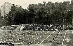 With the finished construction of Alumni Field in 1921, VMI football no longer needed to play on the Parade Ground situated in front of the barracks. The stadium was placed around the same place it is today, and was completed at a total cost of $69,000.[5] The Keydets went 3–5–1 in the stadium's inaugural year, which included key wins over in-state opponents Roanoke, Hampden–Sydney, and a stunning victory over Virginia.