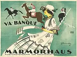 Va banque is a 1920 German silent drama film directed by Léo Lasko and starring Fritz Kortner, Edith Meller and Meinhart Maur.[1] It premiered at the Marmorhaus in Berlin.
