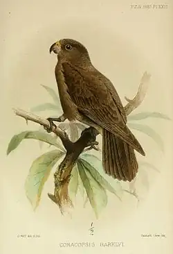 The prominent avifauna, both endemic and global species, with the palm trees as their habitat, are: the Seychelles black parrot (Coracopsis barklyi) (called an "enigmatic bird" that feeds on the fruits of the palm trees and they are akin to the vasa parrots of Madagascar),[7] Alectroenas pulcherrimus (Seychelles blue pigeon); Hypsipetes crassirostris (Seychelles bulbul); Nectarinia dussumieri (Seychelles sunbird); Collocalia francica (Mascarene swiftlet); and Falco araea (Seychelles kestrel).[2]
