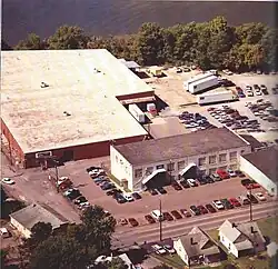The Blount Avenue factory complex c.1984. Formerly part of Alpha Industries, the building in now home to Valley Apparel L.L.C.