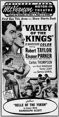2. ^ Pryor, Thomas (September 27, 1952). "NEW METRO MOVIE TO BE SET IN EGYPT: Studio's 'Valley of the Kings' Is Third Hollywood Picture Using That Background". New York Times. p. 13.