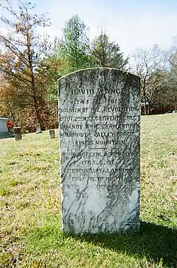 Vance Cemetery is a cemetery at the end of Vance Cemetery Road in Weaverville, North Carolina.[1] The cemetery opened in 1813 when the namesake David Vance, Sr. was buried.[2] His will stated that he was to be buried above his peach orchard. David Vance, Sr. was the grandfather of Zebulon Baird Vance, the Civil War Governor of North Carolina. The cemetery is still functioning today. There are a large number of children buried in the cemetery, victims of the Spanish flu.