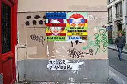The artist duo deals with socially prominent themes such as work, migration, (sexual) identity, death, religion or the financial crisis. Various & Gould's work is influenced by (political) poster graphics, Dada and Pop Art. Characteristics are vivid colors combined with typography and encrypted messages .[3]