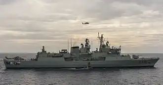 In 2019, the new Military Programming Law was approved by the Portuguese Assembly of the Republic, which provided an amount of 125 million euros for the modernization of the three frigates of the Vasco da Gama class.[1] In November 2022, the order authorizing the Ministry of National Defence to proceed with the modernization, was signed, in order to be able to use the ships in scenarios of high intensity combat.[2] Among the improvements to be made to the frigates is the incorporation of RIM-162 ESSM Block-2 missiles to replace the RIM-7 Sea Sparrow. The frigate NRP Álvares Cabral, within the scope of this modernization process, received in 2023 a new platform command, control and management system, installed by the Portuguese company Edisoft.[3] The Chief of the Naval Staff, Admiral Henrique Gouveia e Melo, stated at the end of 2023 that the modernization program for the Vasco da Gama frigates will make it possible to modernize 2 frigates for high-intensity combat, namely the modernization or replacement of the SEWACO system. A third frigate will be updated in terms of platform management, communications systems and will also be capable of carrying out amphibious raids to project Portuguese Marine Corps forces.[4] The modernization program for this class of ships will be made in Portugal by the Arsenal do Alfeite shipyard, that began in 2023 and will last until 2027 according to the navy's plans, with the last 2 years for the modernization of two frigates and the previous years to complete the upgrade of another frigate as a command platform.[5][3][4]