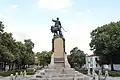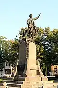 The Vasil Levski Monument stands in Vasil Levski Square in Karlovo, Bulgaria, between the churches of St. Nicholas and the Holy Mother. The foundation stone of the monument was laid on 15 May 1903, in front of prince regnant Ferdinand I. It was designed by the sculptor Marin Vasilev. The statue of Vasil Levski presents him with a revolver in his hand. By his side is a roaring lion, symbolising the nation of Bulgaria. In the lower part of the monument there is a list of Karlovo citizens, who died during the fight for Liberation of Bulgaria in July and August 1877. On the lower part of the pedestal there are three reliefs - "Creation of the revolutionary committee" („Създаване на революционен комитет“), "The arrest of Levski" („Залавянето на Левски“), and "Taking Karlovo's rebels from the konak" („Извеждане на карловски въстаници от конака“).[1][2]