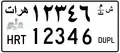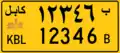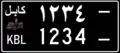 However, the 5-digit code in the capital province of Kabul was exhausted. Thus, newer license plates have an additional extra digit, only in Persian, located separately from the actual numerical code. In addition, two hyphens are shown at the top and bottom of the 6th number.[1]