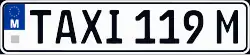 - Taxis: letters TAXI and after three numbers one letter M or G (e.g., TAXI 001M for island of Malta or TAXI 001G for Gozo)