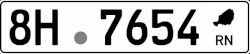 License plate, Niger with European shape and size. The current scheme of regular license plates for private vehicles Niger introduced in 2005. It has 1A2345 format, where 1 - the area code, A - Series, 2345 - number. Regular plates have a white background with black signs. At the right side of the plate are image maps of the country in the colors of the national flag or a simple black silhouette of the country, under which the code has RN. There is a two-line version of license plates. License plate for motorcycles format: A1 / 2345 where A - Series 1 - a region code 2345 - number.[1]