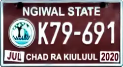 - ^ "License Plates of Palau". Worldlicenseplates.com. Retrieved 18 May 2018.