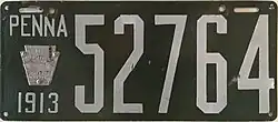 1913 White on green porcelain; "PENNA", aluminum keystone and "1913" at left 12345 1 to approximately 80000