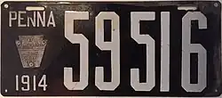 1914 White on black porcelain; "PENNA", aluminum keystone and "1914" at left 123456 1 to 19999;