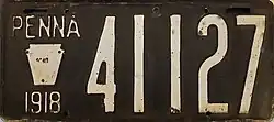 1918 Embossed white on black; "PENNA", keystone and "1918" at left 123456 1 to approximately 368000