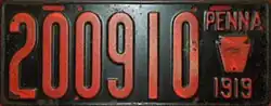1919 Embossed red on black; "PENNA", keystone and "1919" at right 123456 1 to approximately 450000