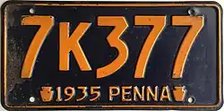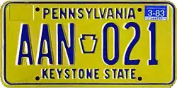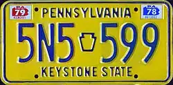 4. ^ a b c d Tanner, Eric N. "Pennsylvania Passenger License Plates". allaboutlicenseplates.com. Retrieved November 10, 2020.