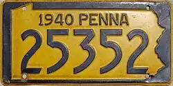 1940–41 Embossed navy blue on golden yellow with state-shaped border; "1940 PENNA" at top 12345