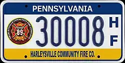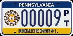 Volunteer Firefighter VF 12345 Issued to volunteer Fire Fighters in Pennsylvania.