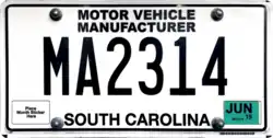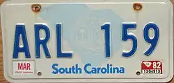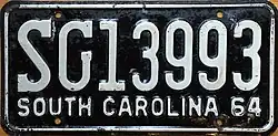 2. ^ Tanner, Eric N. "South Carolina Passenger License Plates". allaboutlicenseplates.com. Retrieved November 11, 2020.