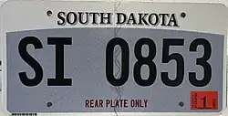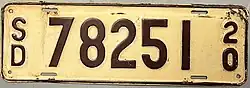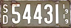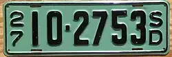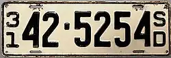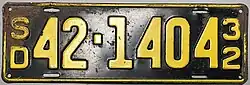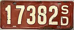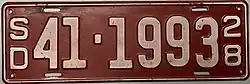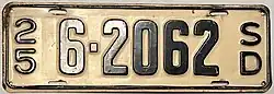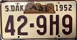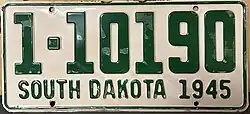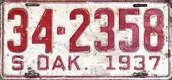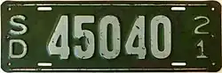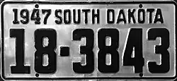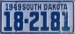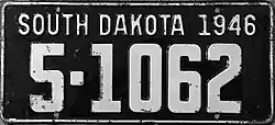 2. ^ "Old South Dakota License Plates". LeatherLicensePlates.com. Retrieved July 21, 2017.