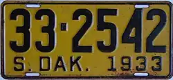 1933 Embossed black on yellow with border line; "S. DAK. 1933" at bottom none 1-1234