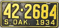 1934 Embossed yellow on black with border line; "S. DAK. 1934" at bottom none 1-1234