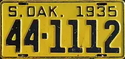 1935 Embossed black on yellow with border line; "S. DAK. 1935" at top none 1-1234