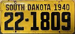 1940 Embossed black on golden yellow; "SOUTH DAKOTA 1940" at top none 1-1234