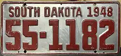 1948 Embossed red on unpainted aluminum with border line; "SOUTH DAKOTA 1948" at top none 1-1234