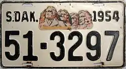 1954 Embossed black on white with border line; "S.DAK.", Mount Rushmore decal and "1954" at top none 1-1234