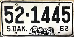 1962 Embossed black on reflective white with border line; "S.DAK.", stamped Mount Rushmore graphic and "62" at bottom none 1-12345