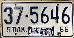 1966 Embossed dark blue on reflective white with border line; "S.DAK.", stamped Mount Rushmore graphic and "66" at bottom none 1-12345