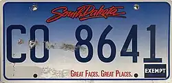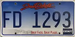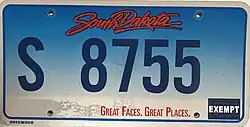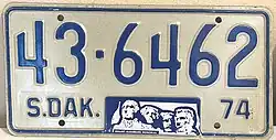 4. ^ a b c Tanner, Eric N. "South Dakota Passenger License Plates". allaboutlicenseplates.com. Retrieved November 11, 2020.