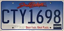 6. ^ "Some South Dakotans not happy with new license plate design". Rapid City Journal. March 8, 2016. Retrieved May 27, 2016.