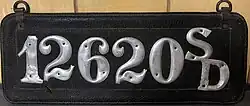 1905 to 1912 (prestate) Riveted metal numbers on black leather plate, "SD" riveted on right 12345 1 to approximately 13500