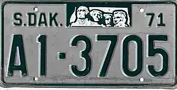 1971 Embossed green on reflective white with border line; "S.DAK.", stamped Mount Rushmore graphic and "71" at top none 1-12345