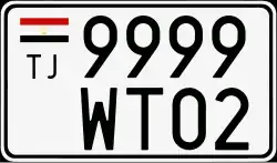 Vehicle registration plate of Tajikistan (previous format from 1996)