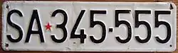 Car number plates in SFR Yugoslavia consisted of a two-letter district code that showed the place where the car carrying them was registered, followed by a red star and two groups of digits that could contain two or three characters, for example: BG 12-34, BG 123-45 or BG 123-456. The letter codes matched the municipalities of Yugoslavia:[1]