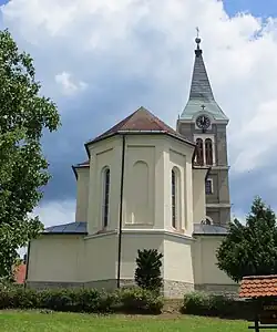 The local parish church is dedicated to Saint Joseph and belongs to the Roman Catholic Archdiocese of Ljubljana. It was built in 1900.[4] A second church, built next to the cemetery 1 km south of the settlement, is dedicated to Saint Thomas and dates to the 16th century with 17th-century alterations.[5]