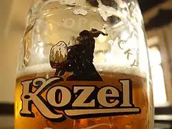Velkopopovický Kozel is a Czech beer produced since 1874.[1] The brewery was founded in Velké Popovice, a town 25 km (15 mi) southeast of Prague. Their symbol is a goat (kozel means "male goat" in Czech). The company was bought by SABMiller in 2002 and sold to Asahi Breweries in 2016.