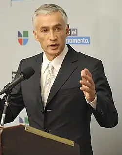 Guaidó began motions to form a provisional government shortly after assuming his new role on 5 January 2019, stating that whether or not Maduro began his new term on the 10th, the country would not have a legitimately elected president in either case,[89] calling for soldiers to "enforce the Constitution"[90] Signs of impending crisis showed when a Supreme Court Justice and Electoral Justice seen as close to Maduro defected to the United States just a few days before the 10 January 2019 second inauguration of Nicolás Maduro. The justice, Christian Zerpa, said that Maduro was "incompetent" and "illegitimate".[91][92][74] Minutes after Maduro took the oath as president of Venezuela, the OAS approved a resolution in a special session of its Permanent Council declaring Maduro's presidency illegitimate and urging new elections.[93] Maduro's election was supported by Turkey, Russia, China, and the Bolivarian Alliance for the Peoples of Our America (ALBA).[76][77]