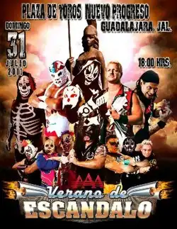Verano de Escándalo (2011) was a major professional wrestling event produced by the AAA promotion, which took place on July 31, 2011, at the Plaza Nuevo Progreso in Guadalajara, Jalisco, Mexico.[1] The title of the event, which has been AAA's annual summer show since 1997, is Spanish for "Summer of Scandal". The event featured seven matches with the main event featuring Los Perros del Mal and Los Psycho Circus facing each other in a Hair vs. Mask Lucha de Apuestas steel cage match, continuing the storyline rivalry, which started in October 2010. The event also featured Jeff Jarrett defending the AAA Mega Championship against Dr. Wagner Jr. and L.A. Park.[3] The event took place only six weeks and four television tapings after Triplemanía XIX, an abnormally short amount of time between two major AAA events; for example there would be ten weeks between Verano de Escándalo and the following major event, Héroes Inmortales. Subsequently, AAA made the decision not to make the event a pay-per-view.[4]