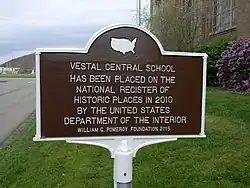 2. ^ Kathleen LaFrank (October 2009). "National Register of Historic Places Registration: Vestal Central School". New York State Office of Parks, Recreation and Historic Preservation. Retrieved June 15, 2010. See also: "Accompanying 11 photos".
