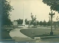 In 1872 David E. Park, a Pittsburgh businessman and financier, made his first philanthropic gesture to Ebensburg. This was in the form of a town park which initially went by the same name, "Town Park." This was Ebensburg's first formal planned space. Later, Park allocated funds for the park and its monument in the 1910s in response to the community's desire for a Civil War memorial.[4] In 1912, a panel of fourteen distinguished Civil War veterans from across Cambria County met to make plans for the memorial's design. After meeting with the project's financial backer, David E. Park, the panel chose the obelisk design and placement of 3,500 names of Civil War veterans on bronze tablets at the monument's base.